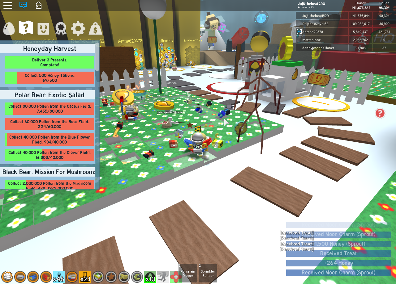 Make sure to check out our newest sprout shirts down below as well if you want in on our sprout parties! +2500 honey, conversion boost (duration: Below is our list of every active and valid bee swarm simulator code we could find. 30 minutes), dandelion field boost ×3. Black bear gives magic beans on the following quests: This is a quick and easy way to gain up some currency which will have you leveling up faster and earning additional upgrades for your … Your hive grows larger as you get more bees and you can explore more of the mountain. Onett posts codes (or hints for codes) in the game itself, on the game's roblox page, on the bee swarm simulator club page, on his twitter account, and on the game's. May 19, 2018 · promo codes are a. Below are 43 working coupons for bee swarm magic bean codes from reliable websites that we have updated for users to get maximum savings. See the best & latest bee swarm magic bean codes coupon codes on iscoupon.com. Bee swarm simulator codes are the special promo codes provided by the developers of the game. Purchasing in the robux shop for 30 robux each.;